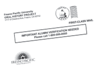 The Alumni Development Office is excited to partner with Concepts, Inc. (PCI) to produce the FPU Oral History Project. This project allows us to hear about your personal experiences from your time at Fresno Pacific or any of its preceding institutions and how the school has helped to shape your life since then.